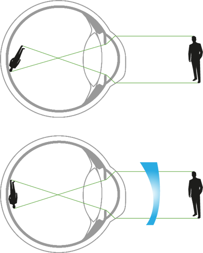 Micopia sau atenuarea este corectată cu o lentilă divergentă, care aduce focalizarea imaginilor pe partea superioară a retinei și, în consecință, ne ajută să vedem mai bine+.